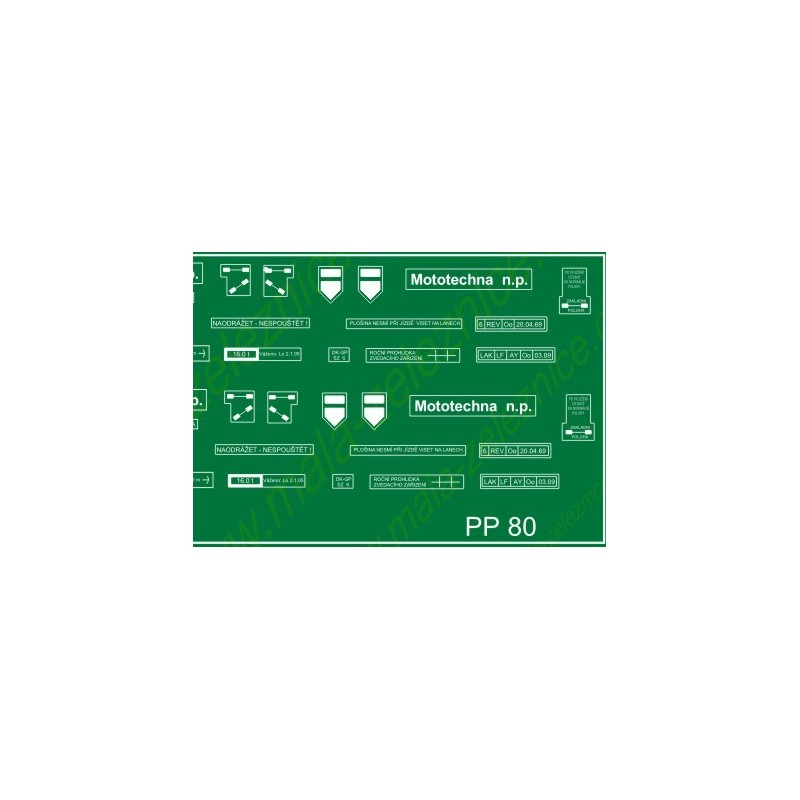 Kvalitní vodou snímatelný obtisk s popisy v lakovaných ostrůvcích umožňující aplikaci "bez nutnosti stříhání".